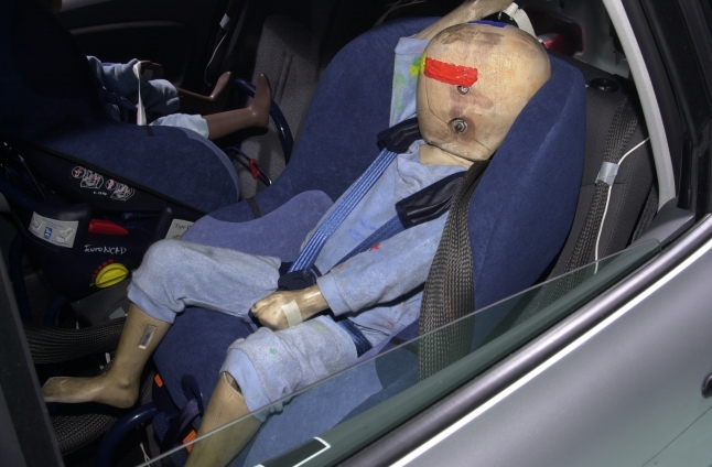 Ko je sprednja plošča potniške zračne blazine deaktivirana na sprednji plošči, je viden "OFF", poročanje o stanju vzglavnika. Vendar pa, poleg piktogramov na plošči in nalepkah na steklu, ki se zlahka zlomi, nevarnost namestitve otroškega stola "proti smeri gibanja" nasproti aktivne zračne blazine ne poroča ničesar. Oba otroka sta bila nameščena v poštnih paketih BIMBO Fit, ki so za starejše in "proti smeri gibanja" za mlajše z uporabo pritrdilnih elementov ISOFIX. Zaščita se je izkazala za dobro.Stranska stavka: