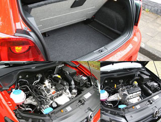 Бензиновите двигатели са представени от 60 и 70-силни модификации на 1,2-литров двигател (само по-мощна версия е налична в Русия) и 1,4-литров 4-цилиндров двигател с капацитет 85 к.с. В началото на 2010 г. гама на двигателите ще попълнят новия двигател с турбокомпресор от серията TSI от 1.2 литра с капацитет 105 к.с., който ще бъде комбиниран с 7-степенна DSG скоростна кутия.