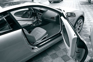To, že a vzhled stroje důvodů pro zklamání nedává, pravděpodobně nikdo. Všechny modely BMW, vydané po nejednoznačném novém sedm, prosím oči čerstvého designu a harmonie. To platí i pro 5. série a nově se objevil 1. a samozřejmě 645 CI. V roušce šesti je vše: šlechta, sofistikovanost, individualita, luxus, dynamika. Klasické rozměry stroje, ale tělesné položky vytvářejí lpící obraz s originalitou. Dlouhá kapuce, malé Skes, jako by oběh nastínil obrovské oblouky, ve kterých jsou velkolepé slitinová kola snadno fit (rozměr 245/40 R19 vpředu a 275/35 R19 zezadu). Nelze si pamatovat přední část s ledovým světlem světlometu, obrovské značkové nozdry, agresivní nárazník s velkými příjmy vzduchu. Za, taky je něco vidět. Na mimořádných LED světlech, například nebo složité víko trupu. A jak jsou stehna této krásy zakřivené! A samozřejmě existují dva výkonné chromované trubky výfukového systému, a to není v žádném případě butafory. Stačí spustit motor a přehrát plynový pedál a obraz stroje je doplněn stejně expresivní zvuk - zlomyslně naladěnou nízkou slupku, která sekají výfukovým systémem mocného V8. Obecně platí vše, co je splněno podle přísných zákonů žánru a s přihlédnutím k bavorským specifikům. Rozhodně nejvyšší úroveň.