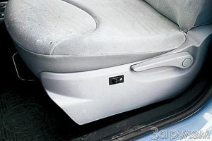 Rozměry kabiny vám umožňují umístění vpředu i velmi velké lidi. Hlava je prostorná, ale stísněná na kolenou. Existují tři tři bodové pásy, omezení hlavy - možnost. Velmi pohodlné sférické deflektory jsou rozptýleny přes panel a ventilátor topení má osm rychlostí. Ve středu je malý displej, na něm se zobrazí hodiny, přes palubu teploty a například signál odkrytých dveří.