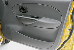 Matiz nemá v základní konfiguraci ani kapsy, ani reproduktory a místo čalounění v horní části dveří, nespojený kov