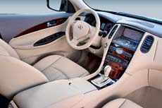 mezi dvěma novými odstíny umožní majiteli zdůraznit jeho osobnost. Podle tradice, Infiniti, EX35 Salon ukazuje dynamickou povahu a snadnost kontroly díky ergonomickým emocionálním prvkům. Přední panel podobný vlnu je nasazen směrem k ovladači, který nyní nemusí namáhat, aby zvážil odečty vysoce kontrastních zařízení s příjemným fialovým podsvícením. Osvětlení LED bodů se nachází na centrální konzole, kde jsou nainstalovány analogové hodiny, které se již staly charakteristickým znakem značky.