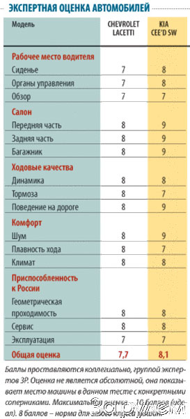 Sergey Voskresensky: Mezi levnými stanicemi jsem považoval Chevrolet Latsetti za velmi úspěšného. A byl hodně překvapen, jak protivníka stiskla snadnost velkolepé Kia Sid SW. Cena však hraje v Latzettiho ruce. Chevrolet lacetti je typický střední rolník: praktický, ale nudný. Mírně starý -módní a nemá nedostatky. Nemá však žádné přímé konkurenty za stejnou cenu.