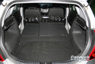 Provázací zavazadla není nejpůsobivější 340 litrů. Současně je tupé podsvícení depresivní. Ale pod podlahou skrývá doku a mnoho výklenků na věci, například je užitečná baterka. Skládáním zadní části zadní řady sedadel můžete zvýšit objem na 1300 litrů a obdržet téměř rovnoměrnou podlahu.