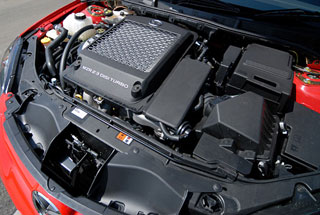 Motor: 2,3-litr, 4-válec s vertikálně obyčejným uspořádáním válců, přeplňováním s mezilehlým chladičem, distribučním mechanismem distribučního plynu s 16 ventily, maximální vývoje výkonu 264 HP Na 5500 ot / min, největší moment je 38,7 kg / m při 3000 ot / min.