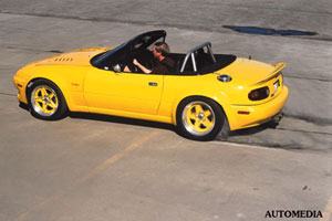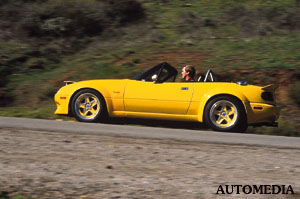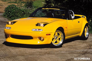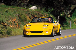 Hlavními výhodami Miata jsou stylové klasické tělo, nízká cena a vynikající běžecké vlastnosti. Hlavní nevýhodou je relativně slabý 4 -vačerový motor (pouze 140 hp), nic jiného se nenavrhuje. Vydání výročí není řešením problému. Rozdíly od sériového, 99 miata má hlavně kosmetiku. No, nahradili vynikající krabici, takže přidali natahování mezi předními stojany, nastavili odpružení trochu jinak ... motor zůstal stejný. Ale existuje cesta ven - pro ty, kterým nevadí, přidávají 35 000 dolarů k nákladům na auto. Italská společnost La Forza Motors, která se specializuje na individuální výrobu SUV s velkými motory Ford, má oddělení v Kalifornii - Monster Motorsports, což dělá totéž s automobily Miata. Za čtyři týdny (a výše uvedená částka) se váš skromný guma změní na monstrum pro oheň, které ponechá daleko za 99% sportovních vozidel, která byla poblíž při semaforu. Během posledních šesti let má Monster Motorsports předělat 250 aut.