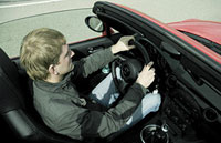 Kapacita bezprostředního motoru o výkonu 160 koňských sil stačí k odtržení od toku ve městě. Při pohledu na dvě potrubí výfukového systému však očekáváte více osvěžující zvuk. Tah motoru je docela rovnoměrný a začíná 4000 rp. min. Můžete jít na libovolný výstroj. Maximálního točivého momentu je dosaženo na 5000 obj. min. Stabilizační systém je odpojen jedním dotykem. Za nic, že \u200b\u200bzadní kola jsou vybavena diferenciálem pro sebe sama, aby je narušily při posunu v oříznutí. Ocas teče velkolepě, ale volant musí díky krátkému stojanu řízení fungovat docela aktivně. Na dálnici žije volant svůj vlastní život. Když kola padají na povlaky s různou reliéfem, zdá se, že neexistuje žádný hydraulický obal. Bagel, jako by ve fit, se zlomí ze strany na stranu. Pokud však držíte volant pevně, zůstává stabilita směnného kurzu. Brzdy jsou účinné, jak očekáváte od sportovních příbuzných. Na dálnici je pohodlná rychlost se sníženým vrcholem asi 120 kilometrů za hodinu. Můžete jít rychleji, ale i ty nejživější vlasy ožívají. Teplota přes palubu toho dne byla asi 12 stupňů a sporák na průměrnou energii, docela efektivně zvládnuto s mikroklimatem v kabině. Poté, co jsem změnil místo u spolujezdce, zjistil jsem, že navzdory symetrii v MX-5 fouká silnější na pravé straně. Zjevně byl důvodem v silném bočním větru. Zapnul jsem zahřívání sedadla, které překvapilo jeho mocí. 10 sekund stačí, aby se změnila v horkou topnou podložku. Na jedné straně je rychlost vytápění působivá, ale existuje nevýhoda - nedostatek nastavení vytápění.