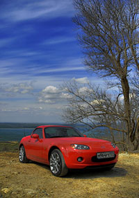 Zatímco jsem šel s klíči k autu, několik kolemjdoucích mě zastavilo stejné otázky: Kolik síly je pod její kapucí? A za jakou rychlost jde? Červený sportovní guma přitahuje pozornost o nic horší než UFO. Mazda MX-5 160 l. str. a maximální rychlost je 215 km/h. Ale zrychlení na limit na MX-5 je stejně hloupé jako kontrola na terénu. Jeho osud je dynamickým hnutím a je dobré, pokud k němu došlo ve vhodné krajině, například na silnici, která procházela pobřeží nebo podél malebného horského serpentinu.