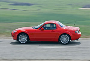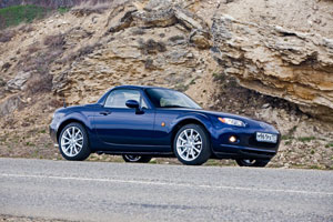 Skládací mechanismus předmět Pride Mazda. Střecha se záhybuje za pouhých 12 sekund a je umístěna v kompartmentu, kde byla dříve uložena měkká vrchol. Kromě toho má Roadster Coupe hladký pohyb stability stability předního plazů silnější o 1,2 mm a v zadní zavěšení pružiny a tlumičů nárazů s jinými parametry. Další plus takového automobilu je nižší úroveň aerodynamického šumu.