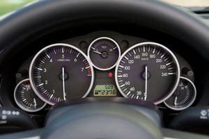 Chcete -li odstranit střechu, musíte se zastavit, položit krabici na neutrální, neomezujte zámek a stiskněte tlačítko. Když jsme skončili na rovné části dálnice s dobrým povlakem, zrychlil jsem se na 200 km/h. Za židlemi mezi ochrannými oblouky je nainstalována malá obdélníková deska, která chrání hlavy cestujících před tahem. Vítr drahá pouze koruna, čím vyšší je rychlost, tím více otravnější. Bez ohledu na to, jak jsem sklouzl dolů, na úkor přistání, nebylo možné skrýt před Windfieldem. Další mínus rychlého pohybu bez hluku střechy. Při rychlosti po dobu 160180 km/h tlačí poměrně silně uchem a nutí ho ztratit rychlost. Spadli, zastavili se a zvedli střechu. Nyní můžete bezpečně zadat 200 km/h. Auto to dělá snadno. Převodové rychlosti v převodovce jsou vybírány tak, jak by měla, a 160 sil je dostačující pro dynamické zrychlení. Navíc, i při rychlosti 150 km/h, Mazda MX-5 se dobrovolně zrychluje. Zajímalo by mě, jak půjde verze s 1,8-litrovým motorem? Při prezentaci nebyly žádné takové.