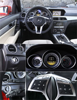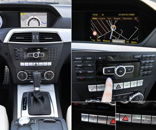Nyní interiéru. Samozřejmě, ergonomie je dobrá. Nejširší řada úprav. Sedadlo řidiče dokonale roznáší zatížení a drží v zatáčkách. Ale vysocí cestující v C-grade míst nestačí, a to zejména v podélném směru. Ale bylo jasné. Co je zde nového? Motivy. Bývalo to klidnější, dnes výraznější. Nový volant, přední panel a materiály. Uvnitř C-třídy se stává stále příjemnější. Multimediální systém COMAND monitoru stacionární. Dříve to byla zapsána v útrobách přední konzole pod posuvným víkem a objevil se v případě potřeby pomocí elektrického pohonu.