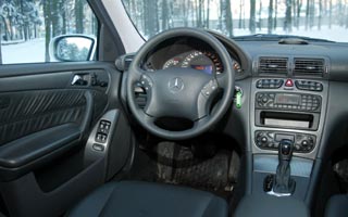 Obecně řečeno, před faceliftingem, kterému byla třída C vystavena na konci minulého roku, řekl bych, že jeho vzhled nevyvolával pochybnosti. Ačkoli nyní, s mírně sníženým dolů a masivnějším předním nárazníkem, získal agresivitu. Změnila se také technika předního osvětlení. Forma samotných světlometů zůstala stejná, ale pod plastovou čepicí se objevily samostatná kola blízkého a vysokého světla, stejně jako bod zlomu. Přední konec se začal podobat snížené verzi aktualizované třídy S. Což samo o sobě není vůbec špatné a poukazuje pouze na firemní identitu. Paralely s vlajkovou lodí společnosti přicházejí na mysl a když se dostanete dovnitř C240 \u200b\u200b4Matic. Tady se chci dlouho spokojit. Luxus byl vždy charakteristickým znakem automobilů se třemi běžeckými hvězdami na kapotě. Ale v C240 \u200b\u200bje to harmonicky spojeno se sportovním stylem. Černé kožené židle mají záviděníhodnou boční podporu. Sedadla poskytují nízké přistání. Vpravo je široká platforma s automatickým převodovým rukojetem, která je kromě obvyklých sportovních a zimních režimů loketní opěrka, pod níž jsou skryty dvě malé krabice (jedna z nich je pro mobilní telefon skvělá). Nohy řidiče jsou v dlouhém tunelu a nedobrovolně připomínají ergonomii sportovních vozů. Volant je rovný, bez sebemenšího sklonu. Kromě toho lze sedadlo a sloupec řízení upravit pomocí elektrických jednotek v širokém rozsahu. A ve skutečnosti existuje pocit, že jste v obrovském sedanu jako třída S, vnitřní prostor je tak úspěšně uspořádán. Mimochodem, cestující za zadní část jsou také dostatek místa.
