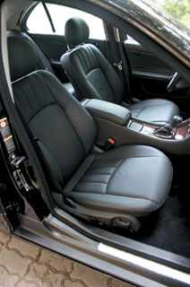 Poznámka: Testovaný stroj byl v klasické konfiguraci, která je považována za základnu! Pro srovnání jsem se dostal za volant E 240 Classic ve výstavní místnosti. Snadnější, více plastů! Je úžasné, že oddělení vlajkové lodi není v žádném případě skvělé: v nepopiratelném aktivum třídy S pouze optronický dashboard, který však již přestal být zázrakem technologie. Nejblíže stylu ke třídě C byl ML s podobným interiérem černých chromů.