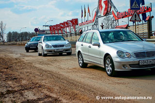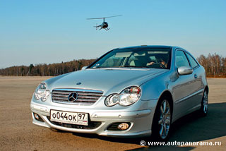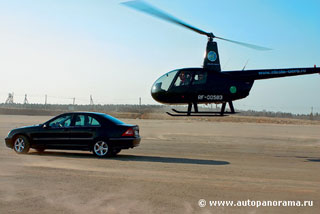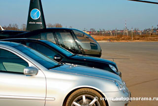inhibice nezachránila z toho, co jezdci nazývají házením, tj. Z ztráty kontaktu předních kol z povrchu silnice za zlomek vteřiny. V takových případech často auto, zejména s krátkodobým tvrdým odpružením, ztrácí stabilitu, ale třída C se na míru odchyl od kurzu a pozastavení fungovalo bez zhroucení. To naznačuje, že byla připravena důstojně na překvapení na našich silnicích. Ale dobrodružství tam nekončila. V jednom z mezilehlých bodů organizátoři testu poprvé odvezli všechny na vrtulníku Robinson a poté poskytli příležitost seznámit se s chováním automobilu v kritických režimech na zvláštním místě. Vrtulník přidal agresivitu chování řidičů, které, stejně jako na souboru nějakého akčního filmu, pravidelně kroužila na holicím letu