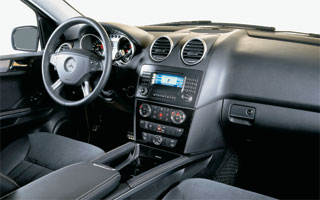 Sedíte na místě řidiče a okamžitě se cítíte v autě, z níž jste třída. Automatický volič převodovky v novém ML migroval do sloupce řízení, v důsledku toho, které se v centrálním tunelu objevily další výklenky. A samozřejmě je kvalita dokončovacích materiálů ve výšce, i když rozdíl mezi mezerami mezi dveřními panely a torpédem hovoří o americkém shromáždění. Měkká a pružná židle je mírně schopna přizpůsobit se každé postavě, nikoli bez pomoci mnoha elektrických motorů. Sloupec řízení je také upraven stejným způsobem. Vzhledem k tomu, že ML 500 má pozoruhodný potenciál, je v interiéru patrné sportovní téma. Za prvé, sedadla s rozvinutou boční podporou. Za druhé, hliníkové pedály a chromové vložky na předním panelu. A nechte centrální konzolu zakončit přírodním stromem, jako by byl v důkazu luxusu, nástroj Shield se dvěma chromovými ovály rychloměru a tachometr připomíná sportovní modely Mercedes-Benz, jako je SLK nebo lipstone kompartment SLR. Ve stejném stylu a rukojeti elektronického ovládání klimatizace se stane, odděleně pro řidiče a předního spolujezdce. Kromě toho mají cestující zadního mikroklimatického řídicí jednotky. Mimochodem, jsou prostorné a docela pohodlné, což dokázali tři spolucestující, kteří po dobu 350 km na jednom konci někdy požádali, aby šli tiše.