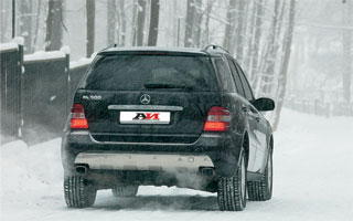 Pro ML 500 na dálnici, jako by neexistují žádné bariéry. Potřebujete předjet? Trochu stiskl pedál urychlovače a okamžitě obdržel příjemný zvuk energetické jednotky. Teprve teď byl krok pedálu příliš velký na brzdy. Ano, a vy jste trochu nervózní na ohybu, protože klikaté silnice ML 500 se opravdu nelíbí. Při vstupu na zatáčku zřejmě ovlivňuje poměrně těžký nos, auto vykazuje určitou vytrvalost. Na druhé straně systém elektronického stabilizace, pokud to, zajišťuje a dělá to velmi kompetentně a rychle. Stojí za to začít klouzání, žluté světlo začíná blikat na přístrojové desce a počítač okamžitě selektivně zabrzdí jednu nebo více kol, což nutí tělo přísně následovat po celém kurzu. Jednou jsme měli šanci zkontrolovat schopnost křížového okruhu ML. Druhý den oslav se rozhodli udělat grilování. Zapálili grilování a když se ztmavla, pochopili světlo nad ním. Pro osvětlení masa s baterkou je to jako ucpávání nehtů pomocí šroubováku. Poté, co viděli příležitost přizpůsobit ML k okraji, rozhodli se tak učinit. Ale po deseti metrech se sníh přilepil na prahové hodnoty. Problém? Žádné problémy! Zvyšuji tělo pomocí leteckého ageru a pod veselým mrknutím indikátoru na přístrojové desce (signalizuje konstantní přerozdělování okamžiku mezi koly), upravuji auto na místo pikniku. Ve světle světlometů xenonu rychle připravíme požadované množství masa a uspořádáme tance na hudbu vylévající ze zvukového systému Harmann/Kardon.