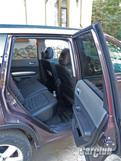 Přístrojová panel přenesená ze středu do ovladače umožnil uvolnit místo pro velký displej, který se zobrazí informace navigačního systému a zezadu fotoaparátu. Bohužel, v Rusku o těchto možnostech, to zůstane jen snít, pokud se objeví v naší objednávce, není to brzy. V kabině jsou již 10 držácích šálků a 4 z nich lze ochladit nebo zahřívat z klimatické instalace. Objem rukavic je prostě obrovský a mezi sedadly je umístěna velká krabička. Vnitřní interiér je do značné míry připomínající Qashqai, a přístrojová deska je vůbec podobná malému a špatně čtenému kole Information Display. Současně interiér vypadá velmi svěží a zajímavě. Ale zadní cestující mají štěstí, bohužel, méně. V přítomnosti poklopu nad hlavami sedí za, ne tolik, jak očekáváte od SUV. Neexistuje také žádné sklady a zadní dveře se ukázaly velmi malé. Zahrnuty a opouštět auto jsou nepohodlné nohy uvízlé v úzkém otvoru mezi póly a zadní pohovkou. Významná část kabiny je podávána pod kmenem svého objemu v 603 litrech úžasná představivost. A maximální objem se složenými zadními sedadly je až 1733 litrů: pro porovnání Mazda CX-7 Tento parametr je 774 litrů. Pro lepší uspořádání dostupného prostoru se v kufru organizuje dvojité pohlaví: vhodné zásuvky jsou skryty pod ním, ve kterých je místo pro všechny druhy silničních nádobí z rukavic před tažným kabelem a lékárničkou. Ale punkce vyšla s rezervním kolem, nacházel se pod podlahou z kabiny. Chcete-li to dostat, bude nutné nejen uvolnit kufr, ale také rozebrat všechny zásuvky.