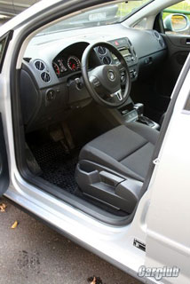 Hlavní vnitřní rozdíl mezi golfem plus je vysoký, téměř minivanový přistání, které usnadňuje přistání v automobilu a výrazně zlepšuje viditelnost a kompenzuje nedostatky širokých předních stojanů, které okna příliš nepomáhají. Pedály a páka převodovky jsou také umístěny výše.