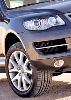 нормальных условиях при сухой дороге, равномерном сцеплении колес с дорожным полотном и постоянной мощности двигателя полный привод обеспечивает равномерное (50:50) распределение крутящего момента между передней и задней осями. Когда же одно из колес попадает на мокрый участок дороги или срывается в аквапланирование, поток мощности перенаправляется если нужно, то и на 100% через многодисковую муфту блокировки центрального дифференциала к колесам той оси, у которой сцепление с дорогой лучше. Таким образом, полный привод одинаково благоприятно влияет как на динамику автомобиля, так и на его активную безопасность: Touareg демонстрирует управляемость на уровне седанов верхнего среднего класса, хорошо подчиняется водителю и сохраняет устойчивость в поворотах даже при неблагоприятных условиях движения.