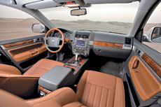 V kabině je jen málo změn: další kombinace zařízení, velikost informačního displeje byla zvýšena, nejvyšší verze obdržela sedadla od Volkswagen Phaetonu. Pokud jde o rozměry (délka 4754 mm, šířka 1928 mm, výška 1726 mm, základna 2855 mm) Touareg patří do segmentu SUV střední třídy. Současně, a to charakterizuje tento koncept jako celek, je nejnovější generace Touareg znatelně nižší než většina jeho konkurentů, což mu dává jejich pozadí velmi dynamický a elegantní vzhled. Výška salonu Touareg odpovídá třídě automobilu. Prostorové ukazatele kabiny navíc splňují nejpřísnější standardy a zavazadlový kompartment s kapacitou 555 až 1570 litrů (s dvojitou klimatickou instalací: od 500 do 1525 l) se snadno transformuje pro racionální umístění zavazadel. Pohodlný přístup k kufru je poskytován velkými zadními dveřmi se skleněným otvorem bez ohledu na to. Dveře zadního kompartmentu se odemknou pomocí elektromechanického pohonu a uzavření usnadňuje nainstalované navíc blíže.