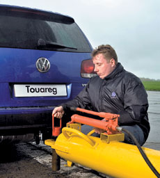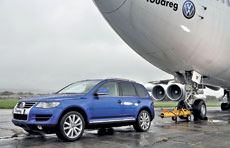 Nová generace Touareg tedy výrazně překračuje svého předchůdce ve všech základních parametrech, zatímco náklady na stroj se téměř nezvýšily. Schopnosti pojmenovaného automobilu jsou skutečně neomezené, což jasně potvrdilo experiment prováděný v Anglii. Návrháři se rozhodli zkontrolovat, zda je možné použít Touareg jako traktor letiště. Boeing-747 byl připevněn ke standardním zařízení Touareg Traction-vázajícím přechodové zařízení a experiment začal. Inženýři vypočítali předem, že s maximálním točivým momentem V10 TDI (750 nm) a přenosem přenosu Touareg je schopen přesunout zátěž o hmotnosti asi 200 tun z místa, ale je možné se spoléhat na výpočty, když se stroj Je 1,70 m vysoká a 4,75 délka M bude muset táhnout 70 metrů rovinu a dokonce za skutečně anglického počasí: se silným deštěm a blížícím se větrem, jako by se nebeské fazole otevřely?