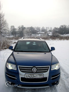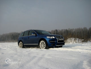 Разъяренный Touareg 4.2 на заснеженной и ледяной дороге отлично держится. Огромные 20-дюймовые колеса идут как по рельсам. Большой плюс Туарега (и не только 4.2-литрового) в наличии пневмоподвески. С помощью круглой ручки можно вертеть 3 режима: вверх, Auto level, вниз. Все эти процедуры должны происходит на месте, а не в движении. Для полного эффекта подвеска имеет режимы жесткости: Sport, Auto, Comfort. В спортивном режиме Touareg 4.2 летит нестандартно ямы наших дорог вообще не заметны. Я не говорю, что подвеска ватная. Просто она идеально настроена под наши дороги, в отличие от других внедорожников, на которых в режиме Спорт лучше не выезжать на улицы Москвы. Режим подвески Auto в в Touareg 4.2 нечто среднее. Последний вид настройки амортизаторов Comfort.