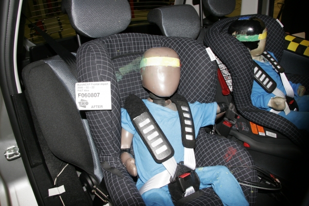 Se puede deshabilitar un airbag de pasajeros, lo que le permite instalar una silla de niños "contra la dirección del movimiento". Sin embargo, informar al conductor sobre el estado de la almohada no está claro. La placa de identificación con el mensaje sobre la inadmisibilidad de la instalación de la silla de un niño "contra la dirección del movimiento" en el lugar del pasajero delantero no cumple con los requisitos de EURO NCAP. Los cierres de tres puntos Isofix en la fila trasera de asientos están disponibles solo como una opción, por lo que se utilizaron los cinturones de seguridad para asegurar los asientos de los niños. Al golpear a ambos maniquíes cometió un tirón de forma inaceptable.Huelga lateral: