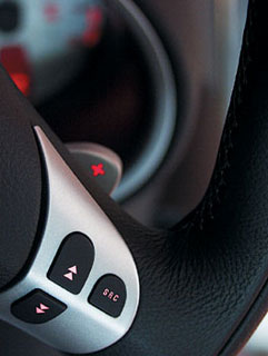 Pero volvamos a la transmisión. Hay dos modos: ciudad y manual totalmente automáticos, con el control del joystick o llaves antes mencionados en el volante.