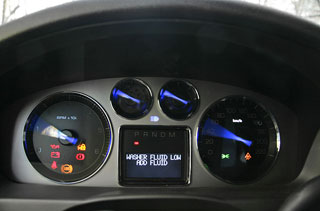 formalmente. Según nuestro cronómetro, se logra los primeros cien, como promete el fabricante, en 6.5 segundos. El conjunto de velocidad adicional ocurre no menos intensamente, y luego la aceleración repentinamente rompe este limitador. Parece que la velocidad no es tan buena, y por alguna razón el automóvil dejó de acelerar. Y solo mirando el velocímetro y al ver la figura de 180 km/h allí, entiendes la verdadera dinámica del Caddy. Además, 170 km/h (según datos de fábrica, el limitador funciona en esta misma marca) no es más bien la máxima, sino la velocidad nominal para Escalade. Aquellos. Habiendo alcanzado el limitador, el SUV no se esfuerza en absoluto y no se topa con el controlador. En este modo, puede moverse todo el tiempo que quiera. El consumo de combustible fue muy moderado para un motor de 6.2 litros y un cuerpo enorme: cuando el control de crucero se incluye a la velocidad máxima, es de aproximadamente 22 litros por cien. Y en comparación con el pariente más cercano de Hummer H2, Escalade, tiene una ventaja casi doble. El apetito de martillo ya a 150 km/h transfiere 35 litros por cien por cien, esto es lo que significa la aerodinámica de un automóvil tan grande como Cadillac. Sin embargo, no puede ocultar la masa en ningún lado y, por lo tanto, con cada overclocking del indicador de combustible, toma un paso hacia la marca cero. Con la conducción activa por la ciudad, el consumo no cae por debajo de 25 litros por 100 km.