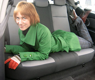 La reducción en el número de puertas que hicieron que el automóvil se viera mucho más compacta y armoniosa afuera no afectó la capacidad de la cabina. Además, los pasajeros traseros podrán acomodar con comodidad: incluso logré estirarme en el asiento trasero casi en plena altura. Pero el tronco con asientos elevados cuenta con volúmenes, desafortunadamente, solo 220 litros no pueden. Además, los bastidores medios en los que se fortalecen los cinturones de seguridad, se retiran hacia atrás, lo que hace que un automóvil no sea la opción más conveniente para las personas en miniatura. Yo, que no había superado la barra de 160 cm, tuve que mover completamente el asiento, lo que complicó el uso de cinturones. Pero los grandes representantes de la humanidad en el automóvil estarán, dónde dar la vuelta. Para hacer esto, crea excelentes condiciones para un techo alto del automóvil y la capacidad de empujar los asientos a una distancia bastante grande de los pedales. Será apropiado mencionar el sistema de ajuste del sistema. Si avanza hacia adelante y hacia adelante, los asientos con una palanca larga y cómoda debajo del asiento, entonces con la configuración de la corbata, no todo es tan simple. Las manipulaciones se llevan a cabo exclusivamente a mano con una rueda, inspirando los recuerdos de la moscovita del modelo 41. Naturalmente, ajustar el aterrizaje durante la conducción no es la actividad más conveniente y segura. Sin embargo, si tiene en cuenta que el automóvil está concebido para el movimiento alrededor de la ciudad, entonces solo habrá semáforos que tomar sus manos.