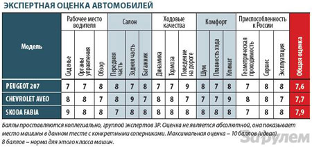 Por supuesto, los rivales de hoy no son de ninguna manera baratos. Las etiquetas de precio de las máquinas en la base de datos se ven muy tentadoras: 350400 mil rublos, pero cuando aparecen cajas automáticas, y los motores y otros baches correspondientes les parecen, el precio supera fácilmente medio millón. Pero son cómodos, pensados, asertivos. Entonces, nosotros, sin experimentar complejos, ¡sonrimos a las damas de Skoda-Fabiya, Peugeot 207 y Chevrolet-Eaveo!