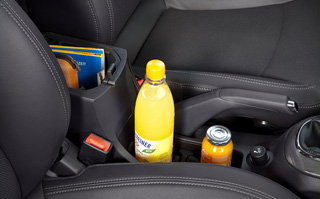Entre los asientos delanteros hay una pequeña caja de boxeo y un par de portavasos