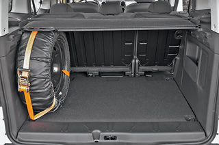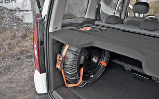 Por cierto, el lugar de almacenamiento de la rueda de repuesto a lo largo del lado izquierdo no parece muy exitoso. Si consideramos su posición dentro del marco de las capacidades de transformación de la cabina, entonces la ubicación de la derecha sería mucho más lógica, porque precisamente desde este lado, la parte posterior del asiento trasero es del ancho más pequeño, lo que permitiría a la izquierda , para usar la izquierda para una gran carga. Y así todo se ve de alguna manera ilógico. Por supuesto, para reconstruirlo la rueda si no hay problema con el cinturón. Pero luego cubra el estante de carga ya no funciona: el corte en él debajo de la parte no comprometida de la rueda se hace a la izquierda. Aquí hay una mala suerte.