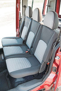 En un enorme compartimento de equipaje, puede colocar hasta 3000 litros de LIT: ni siquiera necesitará desmontar la mesa de comedor de tamaño promedio. Solo vale la pena doblar hacia los asientos traseros. Y la carga es conveniente: las puertas del tronco se abren en diferentes direcciones, por lo que la persona de remo no tendrá que doblarse en un intento de conectar el siguiente casillero al lugar reservado para él. Lamiendo puertas laterales incluso en estacionamientos cercanos proporcionan acceso al asiento trasero del automóvil. Dos adultos se ubicarán fácilmente aquí. Puedes, por supuesto, sentarte y tres. Pero al mismo tiempo, los pasajeros deben ser de gran tamaño o inaceptables: el sentimiento del codo es bueno hasta cierto punto. Sí, y la rigidez de la suspensión es más segura en un equipo pequeño. Y se sacude en Doblo decentemente en todos los caminos con un recubrimiento imperfecto.