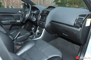 La elegancia del salón es aproximadamente las mismas propiedades: un conjunto de soluciones estilísticas conocidas cambiadas en un nuevo orden. Pero aquí, con una mirada cuidadosa, aparece los chinos. No en diseño, sino en depósitos prácticos. Tales como los botones pintados en la perilla tejiendo, y pintados no en la masa, y en la superficie: después de un año y medio, esta plata atrapada se rompe, levantando una vista lamentable. O en la pantalla del reloj debajo de la visera superior de la consola central: hay un lugar gratuito allí, y las pantallas están hechas por minúsculas, necesitas pimienta. Y ordenado ...