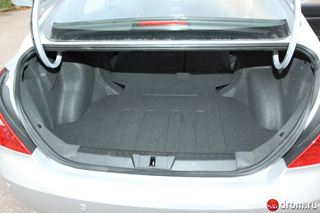 El espacio de equipaje está dispuesto exclusivamente correctamente: el umbral es bajo, y la tapicería en la tapa es, y los amplificadores de refuerzo cruzado no obstaculizan el paso hacia el salón a través de las espaldas de las sillas traseras.