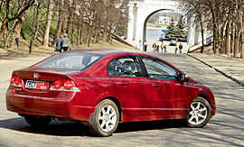 Pero los frenos podrían ser mejores. A velocidades de 150 km/h, solo unas pocas veces presionadas diligentemente sobre el pedal, y vibrados, los discos estaban zumbando, el automóvil comenzó a reducir la velocidad peor que el sobrecalentamiento banal. Pero incluso a pesar de esto, tal vez, el único inconveniente, Honda dará muchos cien puntos hacia adelante en una clase de golf. Después de todo, una máquina japonesa de moda y cómoda con un interior de vertido, e incluso recordando cómo debe conducir un verdadero Honda, se puede comprar por solo $ 19,900. No más caro que Lancer y más barato que Mazda-3 con motores de 2 litros. Y ellos, recuerdan, no tienen un piso plano en absoluto.