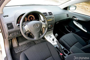 El nuevo Corolla se parece a la hermana menor de Kamri. Incluso en la posición más baja de la silla, el conductor se sienta más alto que en Honda o Mazda. Esto no solo mejora la revisión, sino que también le permite usar sinceramente la longitud de la cabina. Como resultado, con la base de datos más corta, una persona alta se siente cómoda consigo misma. A pesar del hecho de que debajo del piso hay un stock completo 205/55R16, el baúl es excelente. El asiento alto del Corolla se ve rústico, pero conveniente para un conductor de altura pequeña o media. Una almohada grande no es suficiente. Un equipo costoso implica el sensor de lluvia y un espejo interno de electricidad de auto -Clever. El sistema de audio, incluso en la versión de Comfort, lee archivos MP3 y WMA.