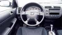 Salón. Tela negra, plástico suave, no un solo ángulo agudo. El salón es estricto y de alta calidad, como un buen traje. Tradicionalmente, los asientos Honda duros con buen soporte lateral y tres ajustes permiten que el conductor de cualquier tez se acomode convenientemente. Las personas más altas del promedio faltan mucho para ajustar la columna de dirección a lo largo de la longitud. Las manipulaciones con el asiento mejoran ligeramente la situación, pero aún tiene que alcanzar el volante. Un volante grande y suave con estampado deportivo y Eirbeh camina en un plano vertical, mientras que ni en el punto inferior ni en el punto superior bloquea el panel de instrumentos (velocímetro, tacómetro, ozómetro digital, indicadores de temperatura y nivel de combustible). El modo automático de la caja de cambios se coloca correctamente. El tablero conduce suavemente a los controles de la instalación climática. Los grandes deflectores centrales coronan una consola semicircular. Aquí hay un agujero para la radio, y no solo para estándar, sino también 2din, y tres botones: calentar la ventana trasera, recirculación y encender el aire acondicionado. Las manijas de control climático están verticalmente, más cerca del conductor, todo se puede ajustar sin quitarse las manos del volante.