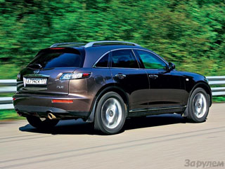 Escapar al alcance, y realmente olvídate de las deficiencias del FX45. Un poderoso ocho arrancan un coloso de dos toneladas, como una pelusa. Vuelas, sin notar cómo se atasca la máquina. La confianza y el reinado tranquilo en el interior, que se facilita por dimensiones sólidas y frenos tenaces. Infinity está de manera confiable en el camino, y la dirección informativa y los colgantes bien ajustados cumplen exactamente los deseos del conductor. En las esquinas, los neumáticos enormes y anchos cavan profundamente en el asfalto, y cuando sus fuerzas de acoplamiento