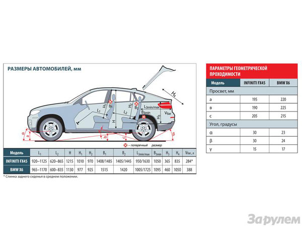 No es fácil subir a un automóvil alto. En las máquinas presentadas, la tarea se complica por el hecho de que la puerta es pequeña. Para llegar al lugar del conductor, incluso una persona de altura media tiene que doblar la cabeza y al mismo tiempo realizar casi un hilo, levantarse sobre su pierna izquierda y transferir la derecha al salón. El piso en BMW es ligeramente más alto que en el infinito, y el umbral es más ancho, por lo que un buen músculo que se extiende al conductor X6 no dolerá, de lo contrario manchará los pantalones. En FX, otro peligro está esperando el borde lejano del panel de instrumentos, que es fácil de aplicar a la rodilla. Un poco para protegerse de los contusiones y los conos ayudará al asiento que se aleja cuando apague el encendido (esta función se puede apagar).