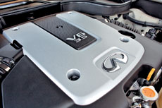Infiniti G35 siempre se ha distinguido por excelentes cualidades de carrera, en gran parte debido a los 3.5 litros con un volumen de trabajo de 3.5 litros marcados por numerosas recompensas. El motor VQ V6 de cuarta generación VQ se rediseñó significativamente, el 80% de las piezas son nuevas. La parte inferior del bloque de cilindros se realiza de acuerdo con el esquema de hueco para aumentar la rigidez, el diámetro de los cuellos indígenas del cigüeñal y los dedos de pistón ahora es ligeramente más grande. Para reducir las fuerzas laterales que actúan sobre el pistón, la altura del bloque de cilindros aumenta en 8,4 mm, y el centro de gravedad del motor se reduce en 15 mm, lo que afectó favorablemente las cualidades de carrera de la máquina. Otros cambios realizados en el diseño de la unidad incluyen: el uso del sistema electrónico de fases variables del sistema de liberación (CVTC); aumento en la velocidad máxima del eje del motor (de 6600 a 7500 rpm); mayor grado de compresión (de 10.3 a 10.6); el uso de pistones con faldas asimétricas, sensores de doble detonación, nuevas bujías con recubrimiento de iridio; Un sistema de enfriamiento modernizado. La instalación de un nuevo colector de admisión simétrico dual hizo posible reducir la resistencia al flujo de aire en un 18% y lograr un aumento en la potencia en 3 litros. Con. Un nuevo sistema de escape doble con colectores de escape igual a la longitud y la resistencia reducida (25% más baja que la del G35 de la generación anterior) mejora el intercambio de gases en la unidad de potencia.