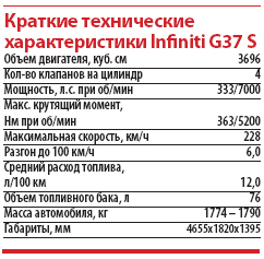 Es cierto que en nuestras carreteras deberías estar alerta. Infiniti G37 categóricamente no tolera, por ejemplo, es rutina para un compartimento, es como fuera de carretera para un scooter. La inestabilidad ocurre instantáneamente, y en el escudo del instrumento, el deslizamiento de inscripción amarilla parpadea penetrante, lo que indica que las ruedas de transmisión trasera se deslizan. El sistema de estabilización, por cierto, puede no tener tiempo para involucrarse en el trabajo, o simplemente no entender lo que está sucediendo con el automóvil a tiempo, por lo que el conductor debe controlar de forma independiente la situación.