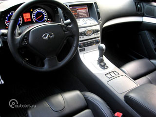 En el bolsillo de la chaqueta se encuentra una llave intelectual, lo que significa que las puertas G37 se abren al presionar el botón negro sobre la manija de la puerta. Por supuesto, el inicio del motor se llama de la misma manera electrónica. Es una pena que con el motor apagado, no se pueda escuchar al receptor musical. Y suena no menos elegante que un motor potente. La configuración correcta del ecualizador y experimentará todos los encantos del sonido correcto. Es una pena que el receptor no tenga navegación. Pero hay un reloj analógico patentado infinito. A continuación se encuentran el control climático. Los asientos se crean idealmente para cualquier figura. Los únicos jugadores de baloncesto menos con una altura de más de 192 cm no serán convenientes. El techo se hace bajo en el espíritu de autos deportivos reales.