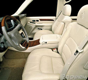 El interior de Cadillac es cuero blanco, madera costosa, sillones con reposabrazos y cinturones de seguridad integrados.