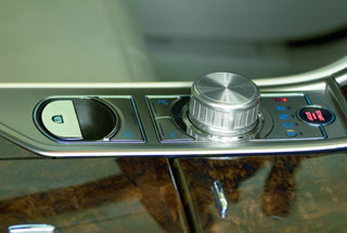 Hago clic en el botón de arranque del motor, y al mismo tiempo que un largo y conocido 4.2 litros ocho cobra vida debajo del capó con jugosos gruñidos, están sucediendo dos cosas en la cabina, que causan una sonrisa de emoción de los niños en mi fisonomía: Un cilindro giratorio crece desde el túnel central, utilizándolo, utilizando el cual es la elección del modo de funcionamiento de la máquina de 6 pasos y, que rompen su propio eje, aparecen deflectores de ventilación, que antes se disfrazaban del acabado de metal de el panel frontal. Ni uno ni el otro habían encontrado previamente en ninguno de los autos en serie. ¡Las soluciones originales! Aunque, por supuesto, cuesta dinero adicional y potencialmente tenso con un exceso de mal funcionamiento.