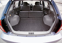 Por supuesto, el tronco en sí, según los estándares actuales, está equipado sin aventura. Los tumores grandes de la suspensión trasera comen un volumen útil, y la parte posterior del sofá al plegar forman un paso. Puede quejarse de una abertura relativamente estrecha y una gran altura de carga. Queja si quieres. En cualquier caso, no se puede encontrar un hatchback más espacioso (léase: camioneta) en el aula. Por tal precio y aún más.