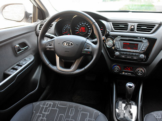 Sin embargo, el interior se ensambla de manera eficiente, sin crujidos y grillos. Hay contenedores solubulares y un compartimento especial para un teléfono móvil. Y una característica más importante: a pesar de la luz roja, nada en los instrumentos o controles, Kia Rio no es molesto. La primera lea perfectamente, y el segundo son fácilmente accesibles.