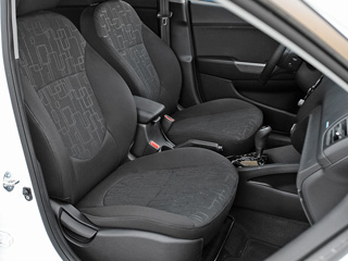 El asiento del conductor está regulado no solo longitudinalmente, sino también en altura. Asientos, un paño especial, no de marca, en forma simple, pero bastante cómodo. Eso es solo una densidad mayor y un apoyo lateral más acentuado.