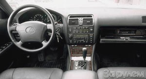El cuerpo tiene 4.2 puntos. No puede llamar a la apariencia de la cuatro centésima vanguardia, pero esto no es necesario: algunos antiguos solo enfatizan la solidez del propietario y su inapropiación con una poesía diminuta. La alta calidad del rendimiento de dicho automóvil está implícito. Pero el apósito triple (!) De las puertas es una rareza. Las puertas suaves de clic, y caemos en el tocador de cuero negro y madera de nuez. Puede relajarse aquí de acuerdo con el programa completo: diseñado específicamente para Lexus, el doble sistema de audio de audio, SI-DI-WHENTER para seis discos, un teléfono celular en un ajuste de microclima separado (izquierda y derecha), separado (izquierda y derecha), Asientos, hasta tres luces de cigarrillos con ceniceros, como cenicero. Completamente proveniente de donde los portavasos y mucho más. Y en el compartimento de guantes hay instrucciones y un libro de servicio ... en la encuadernación del mismo cuero que la tapicería de la cabina. Cabe señalar que Lexus es muy espacioso, aunque en algunos casos los rangos de ajuste confirman la subtitalidad de los diseñadores. Por otro lado, hay un lugar para un jugador de baloncesto: en la posición extrema, el asiento derecho deja casi debajo del panel frontal y detrás de la espalda no es como las rodillas, ¡los calcetines no alcanzarán sus zapatos!